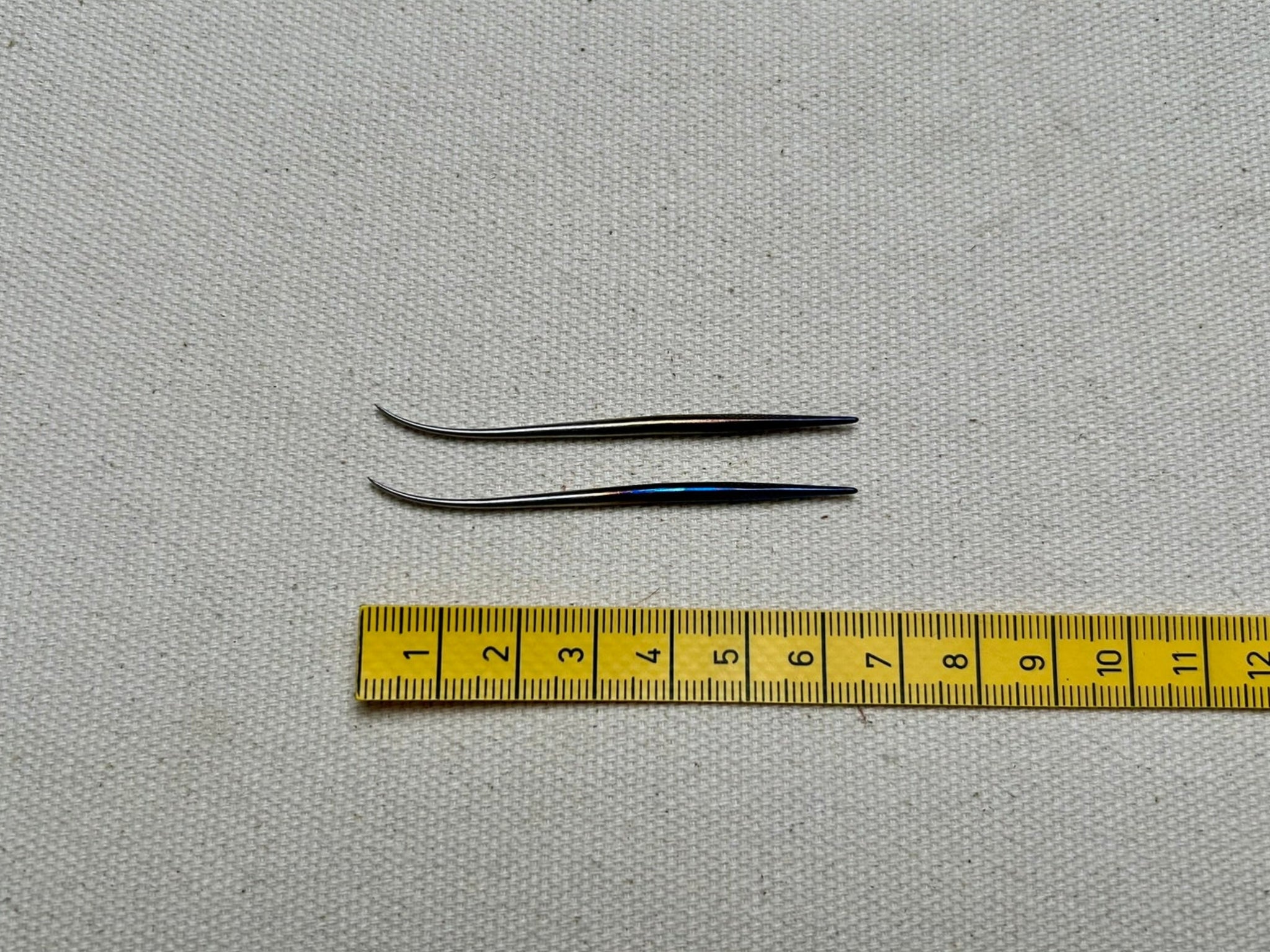 2 x welting awls by German manufacturer KING. They are used to sew the welt and upper to the insole holdfast. The awls are new old stock.