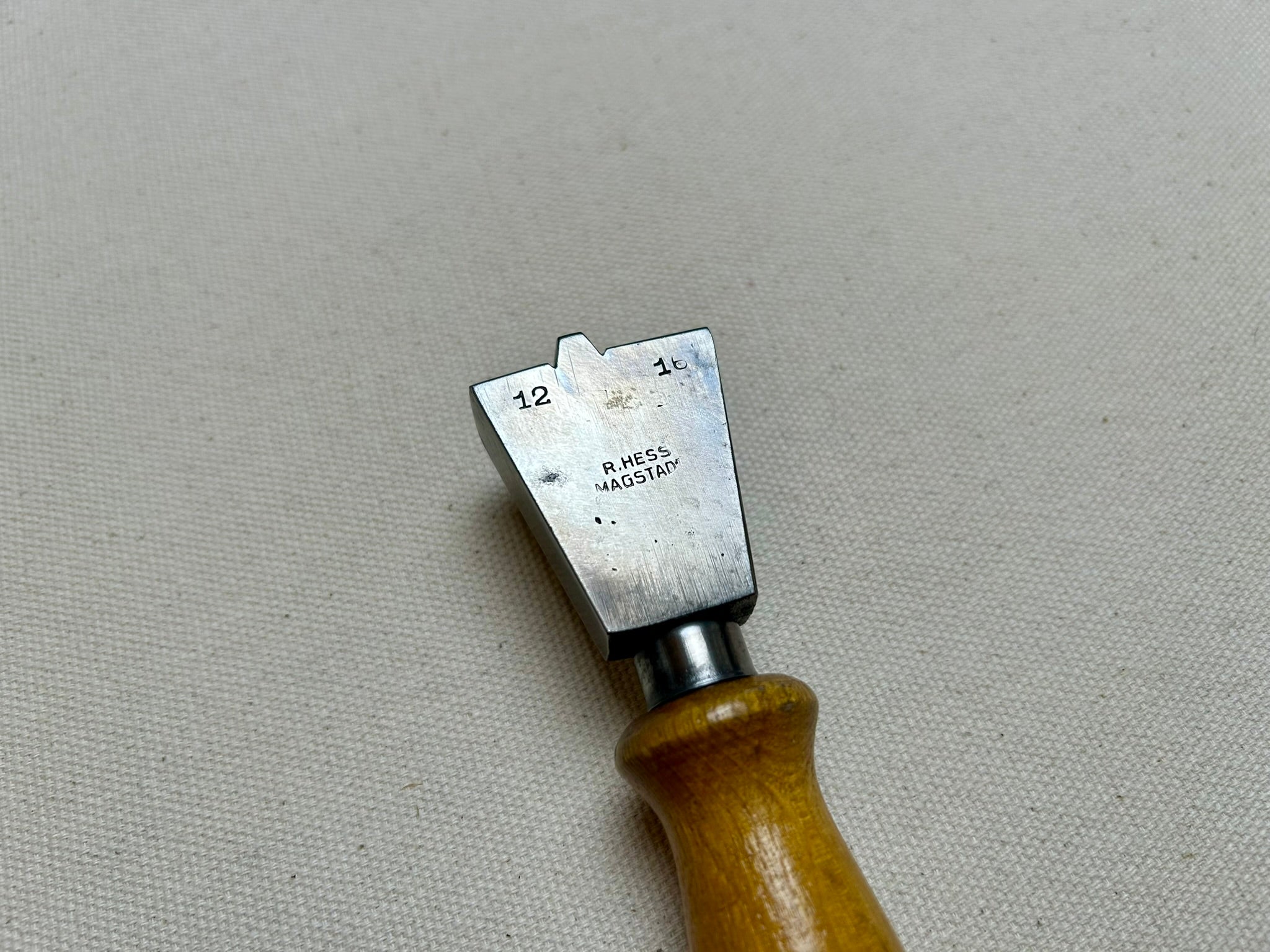 Double forepart iron by R.Hess, Magstadt. The iron is marked with "12 - 16" and has a wide of 13,0 mm and 16,5 mm.