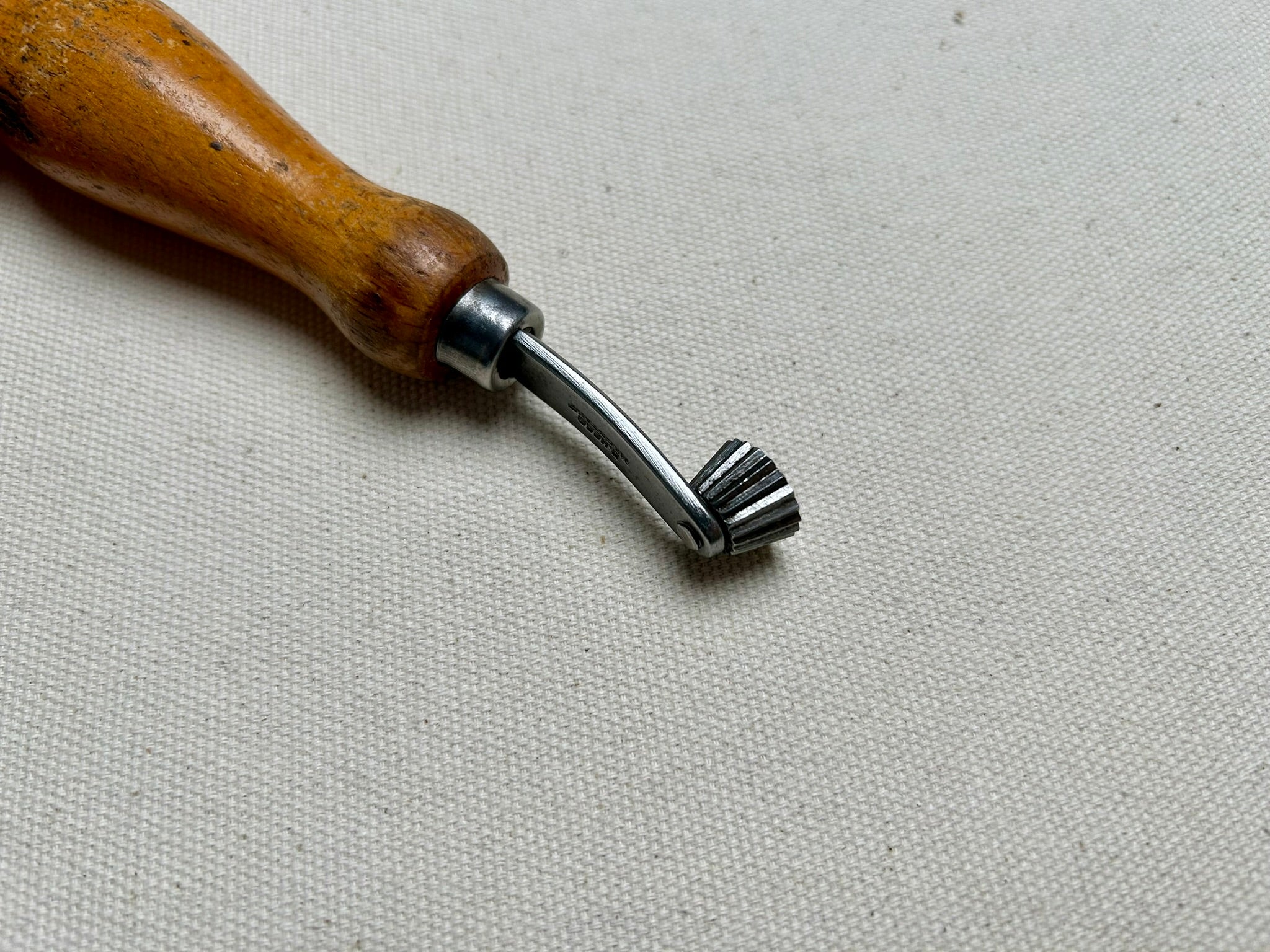 Fudge wheel in ready to use condition by R.Hess, Magstadt. The wheel has a size of 11 spi (stitches per inch).
