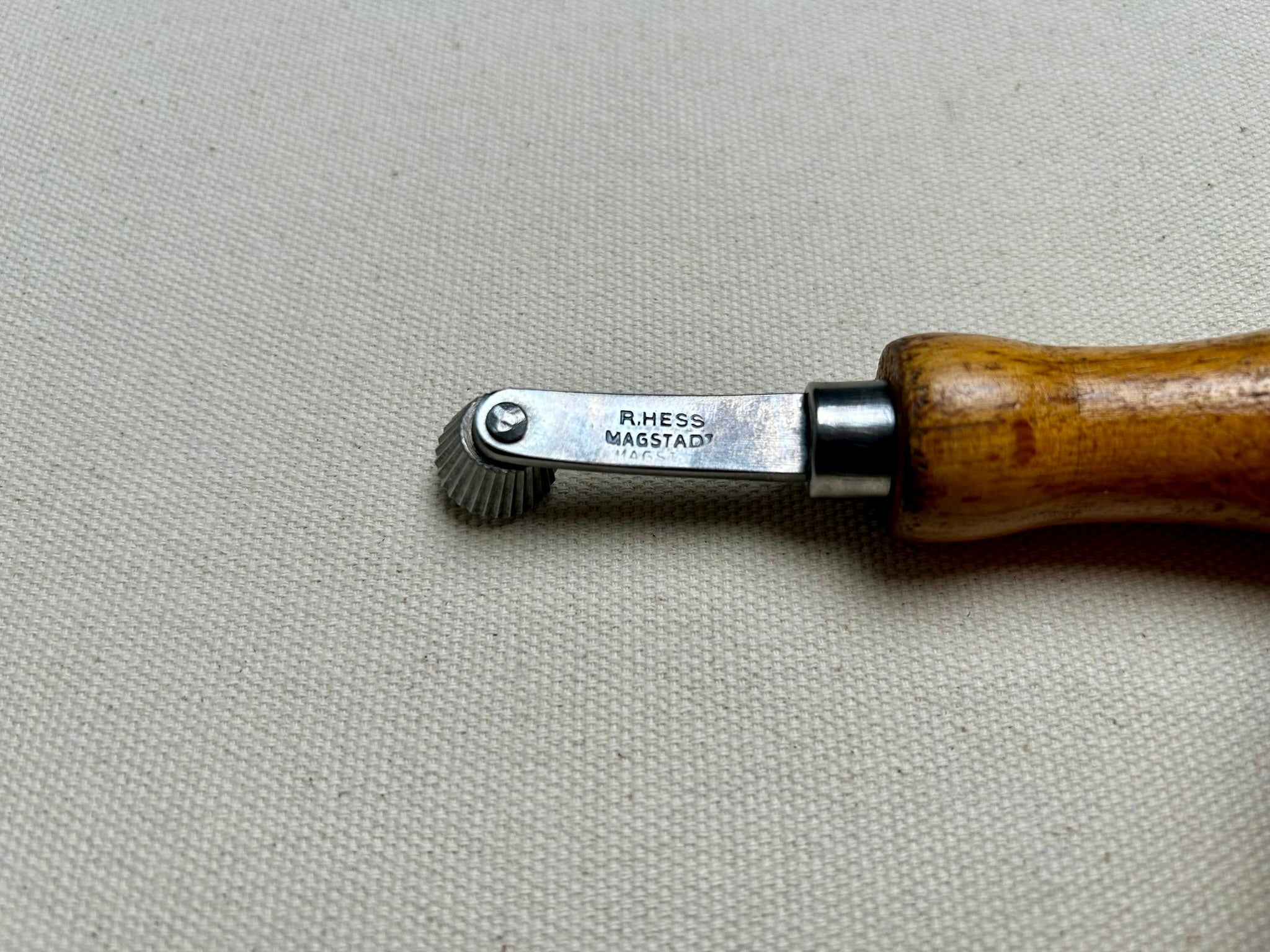 Fudge wheel in ready to use condition by R.Hess, Magstadt. The wheel has a size of 16 spi (stitches per inch).