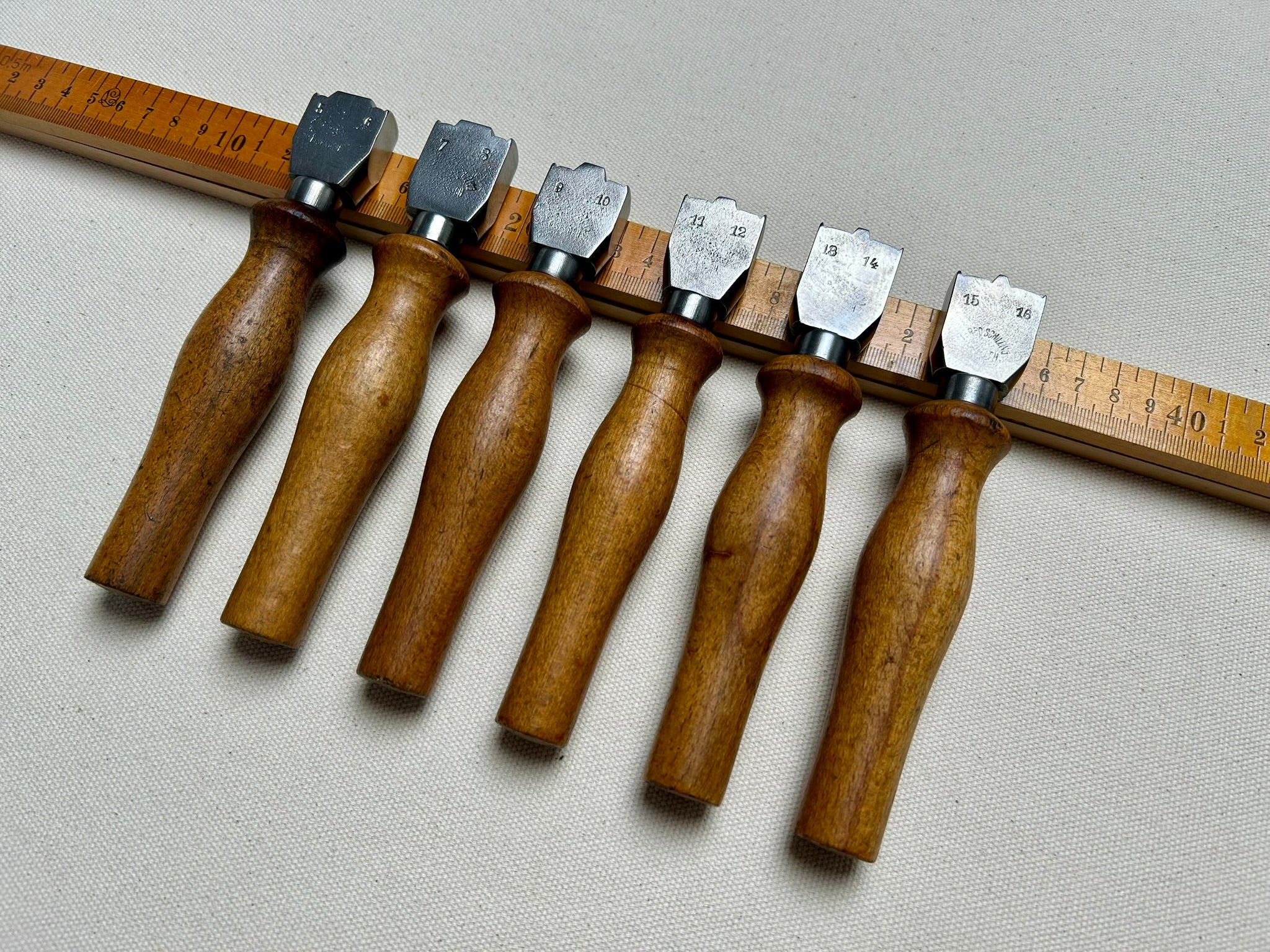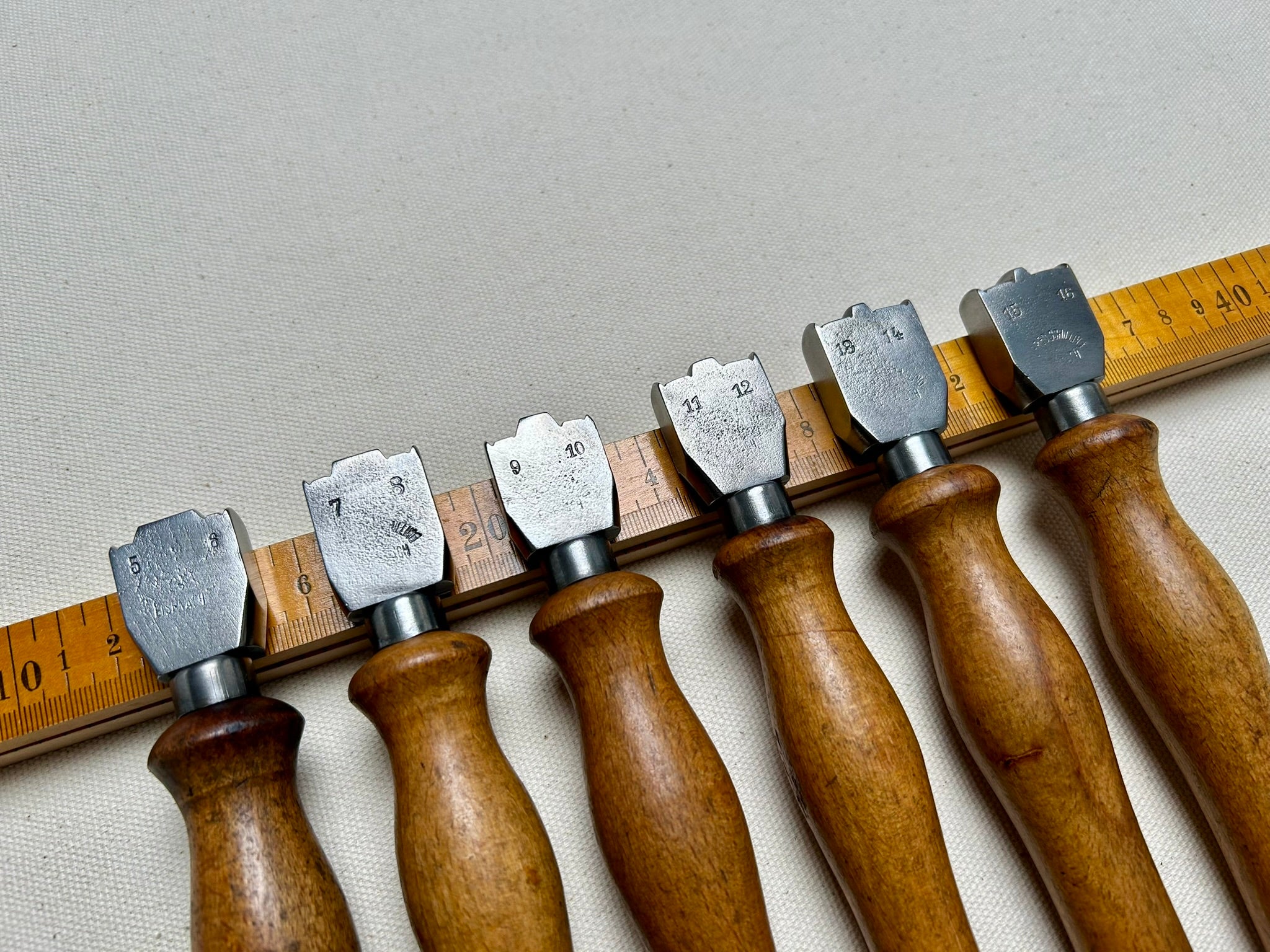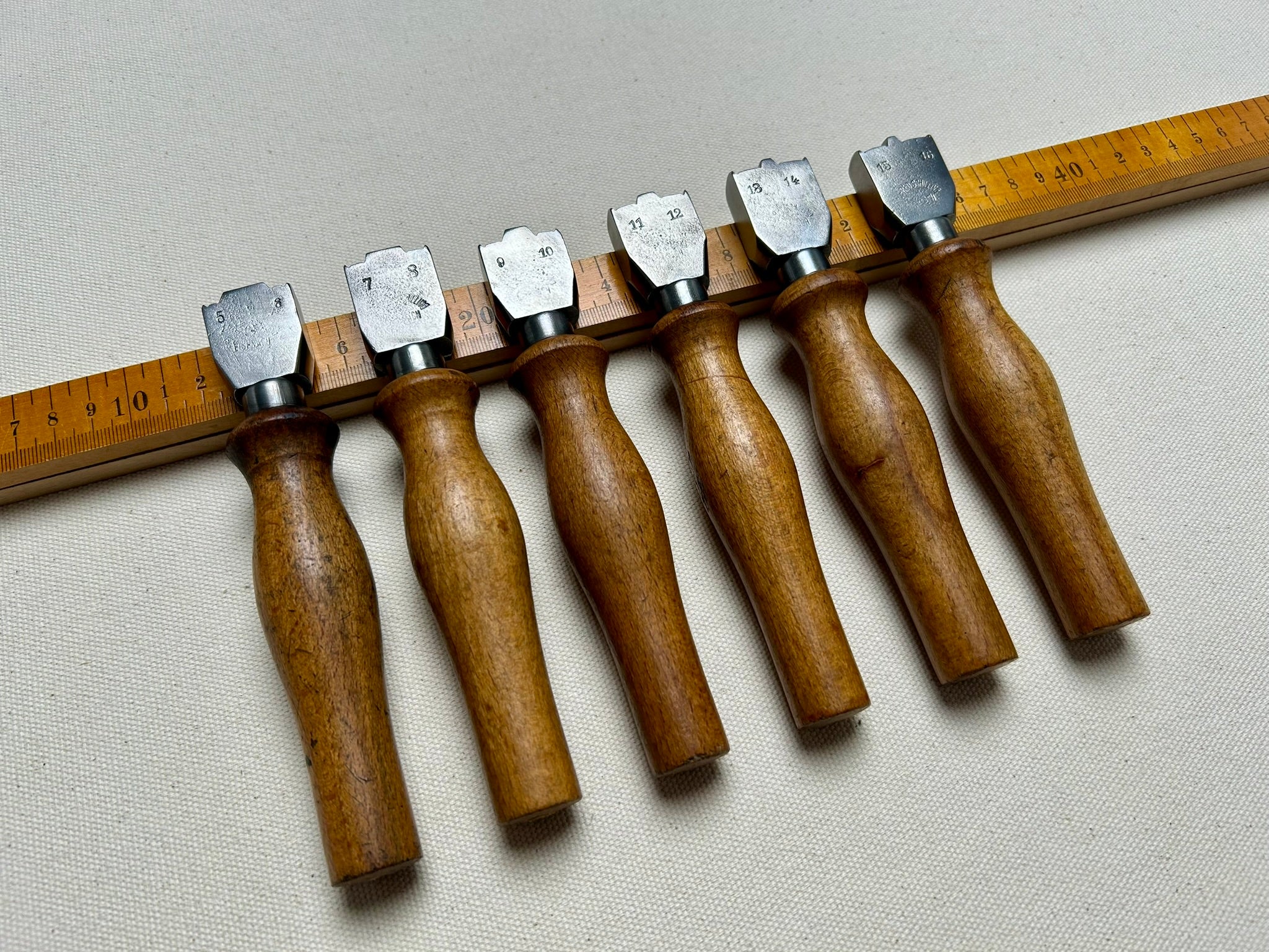 Shoemaker iron set by Alfred Schilling, Eisenach, Germany. The set includes 6 x double edge irons from number 5 till 16 (from 3,5 mm - 10,0 mm)