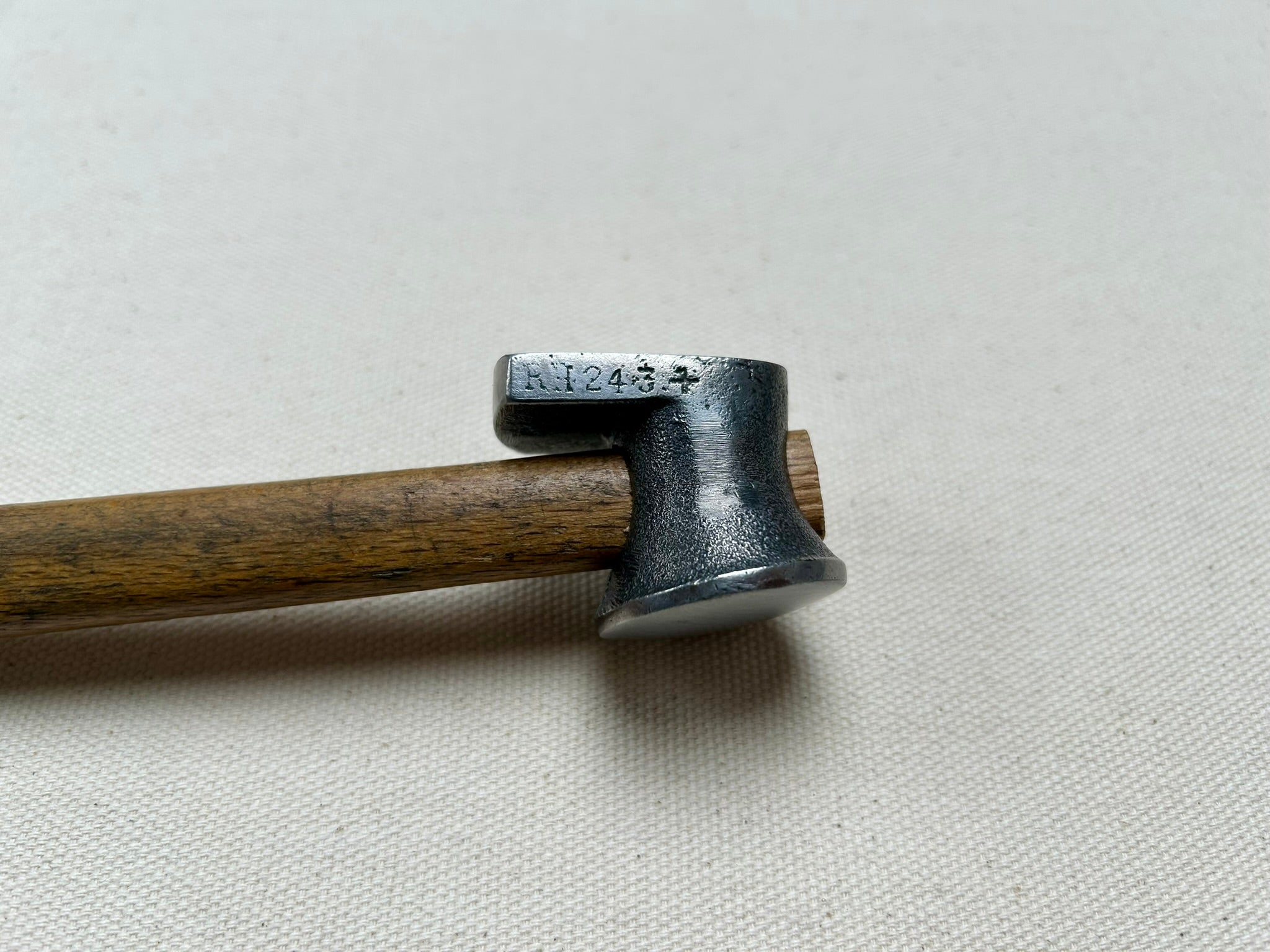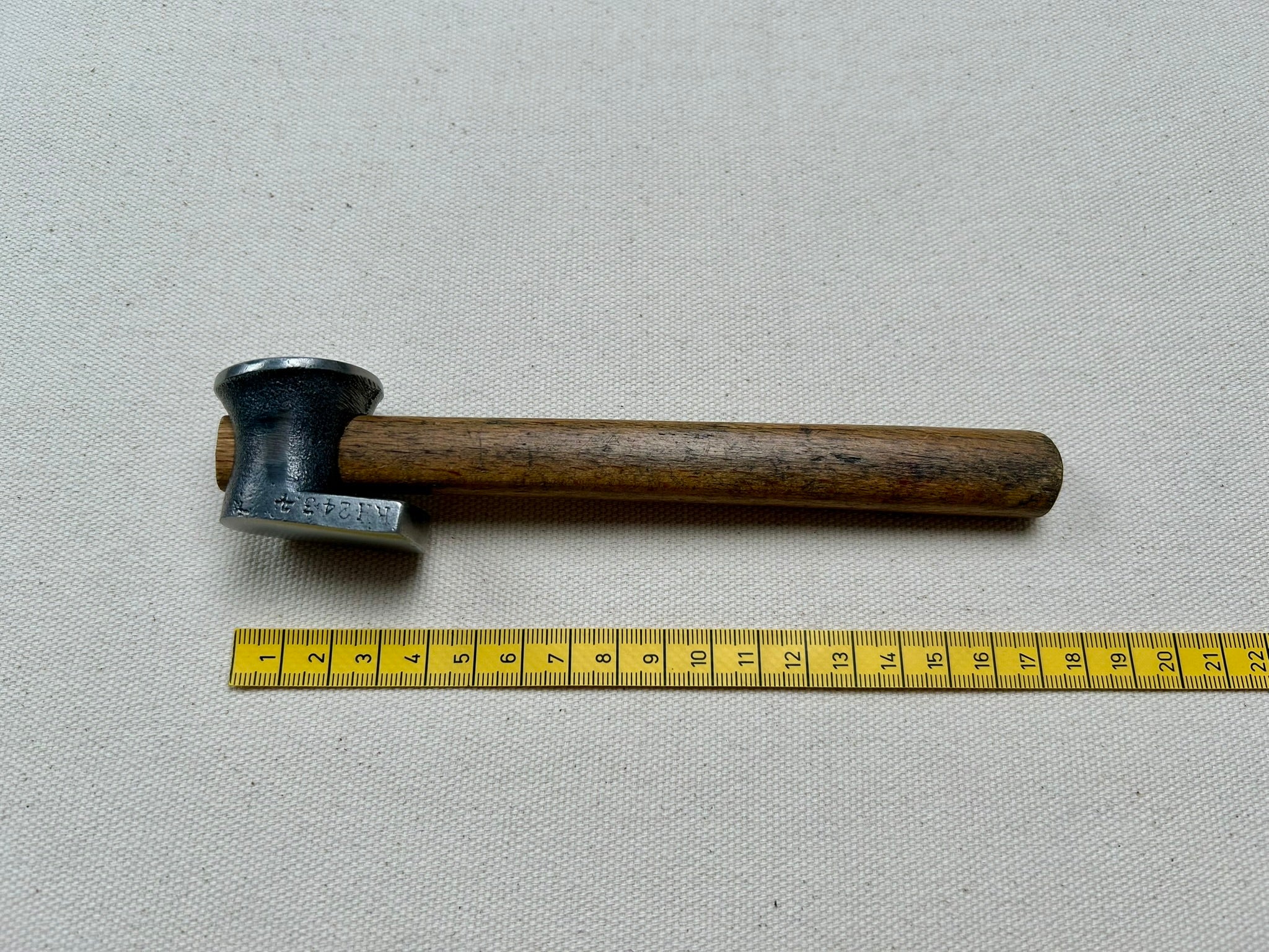 Closer hammer in American pattern by R.Hess. A closing hammer is used in the pattern making process to bend, hammer leather edges and press glued parts. The closer hammer is used and the working surface is smooth. The hammer has a weight of 170 gram.