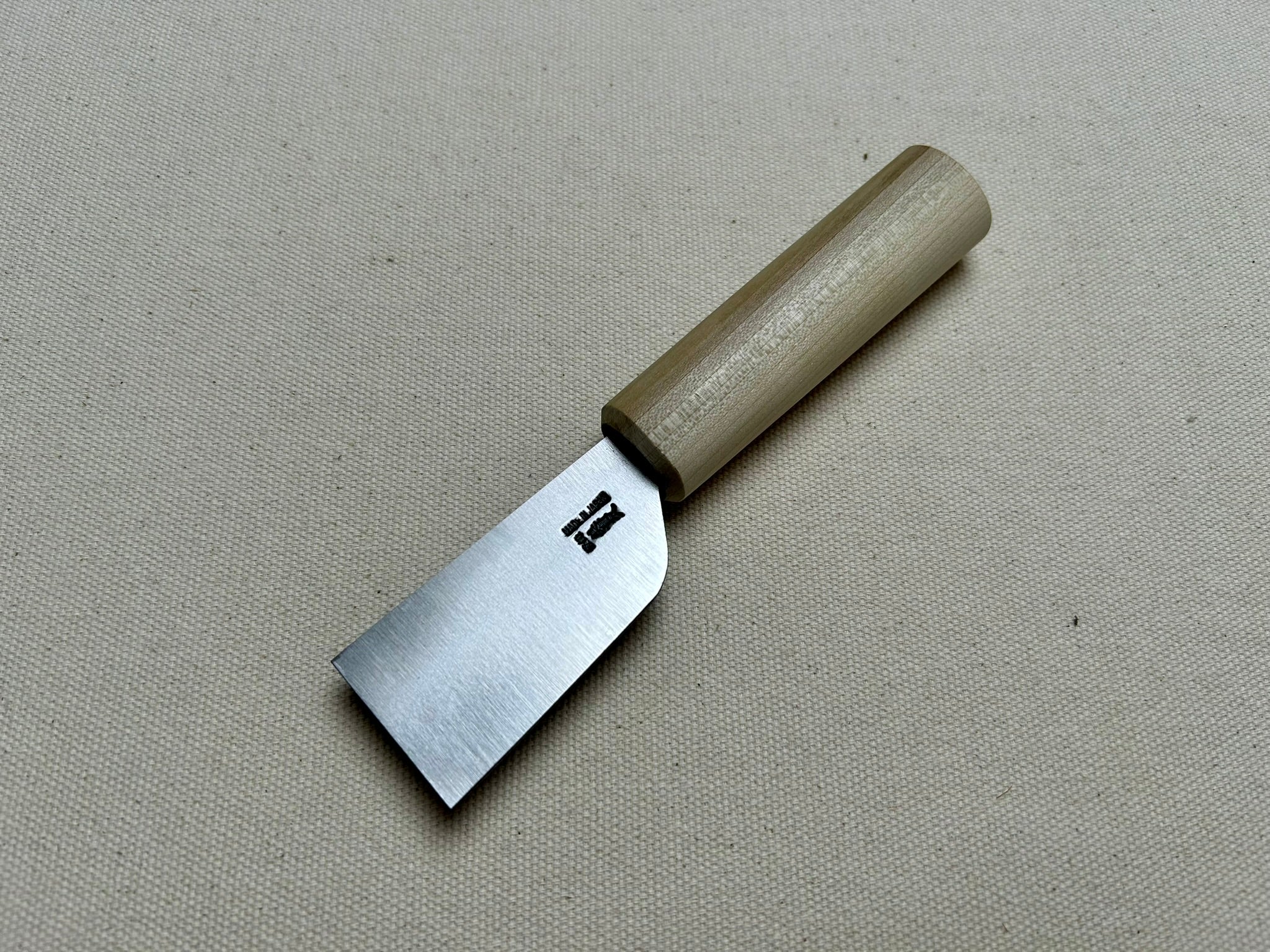 Japanese shoemaker knife brand Mikihisa. Made in Japan from quality two-layer carbon steel with a handle from magnolia wood. The knife can be used for almost all cutting tasks in bottom work, skiving of toe puffs and heel counters. The usage of this knife is very common in Japan.