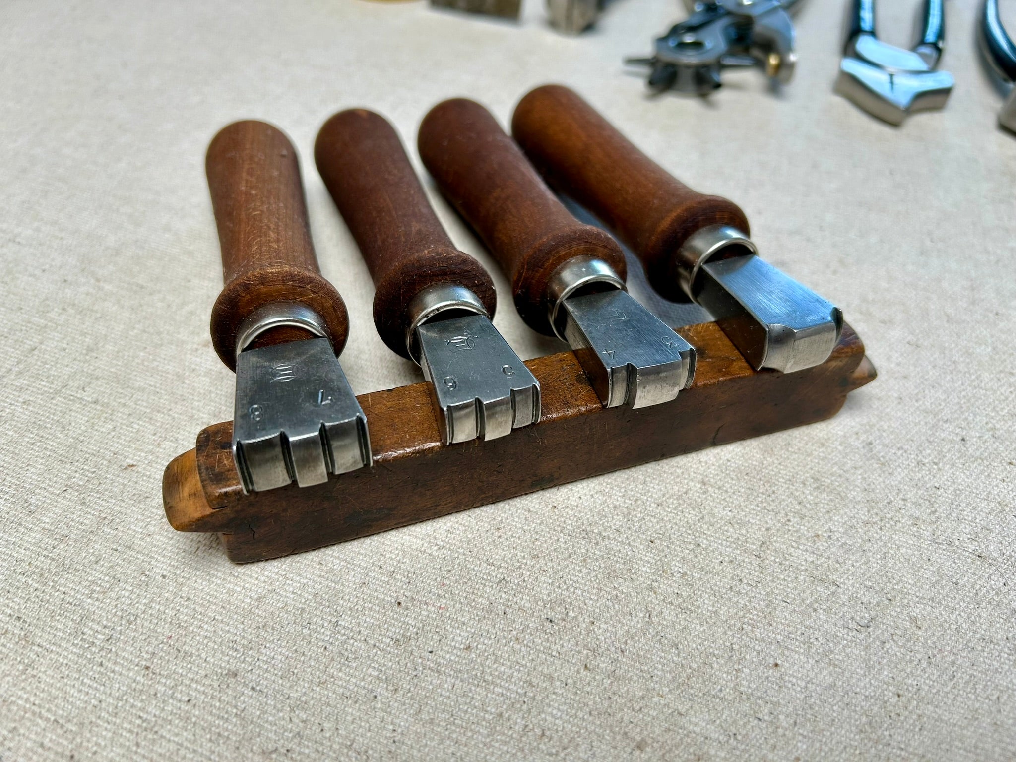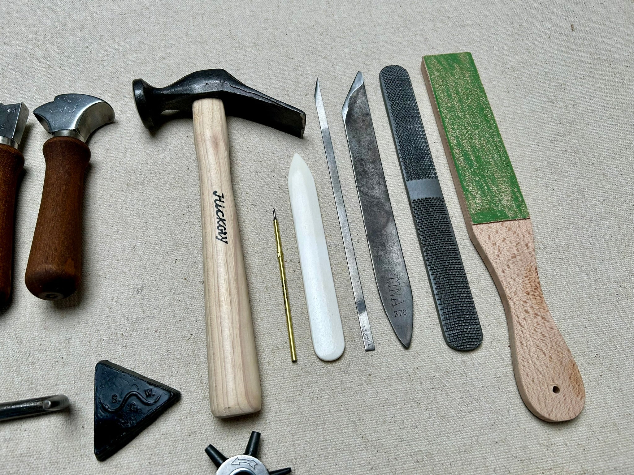 The tools are new and used quality shoemaker tools, sharpened and in ready to use condition.