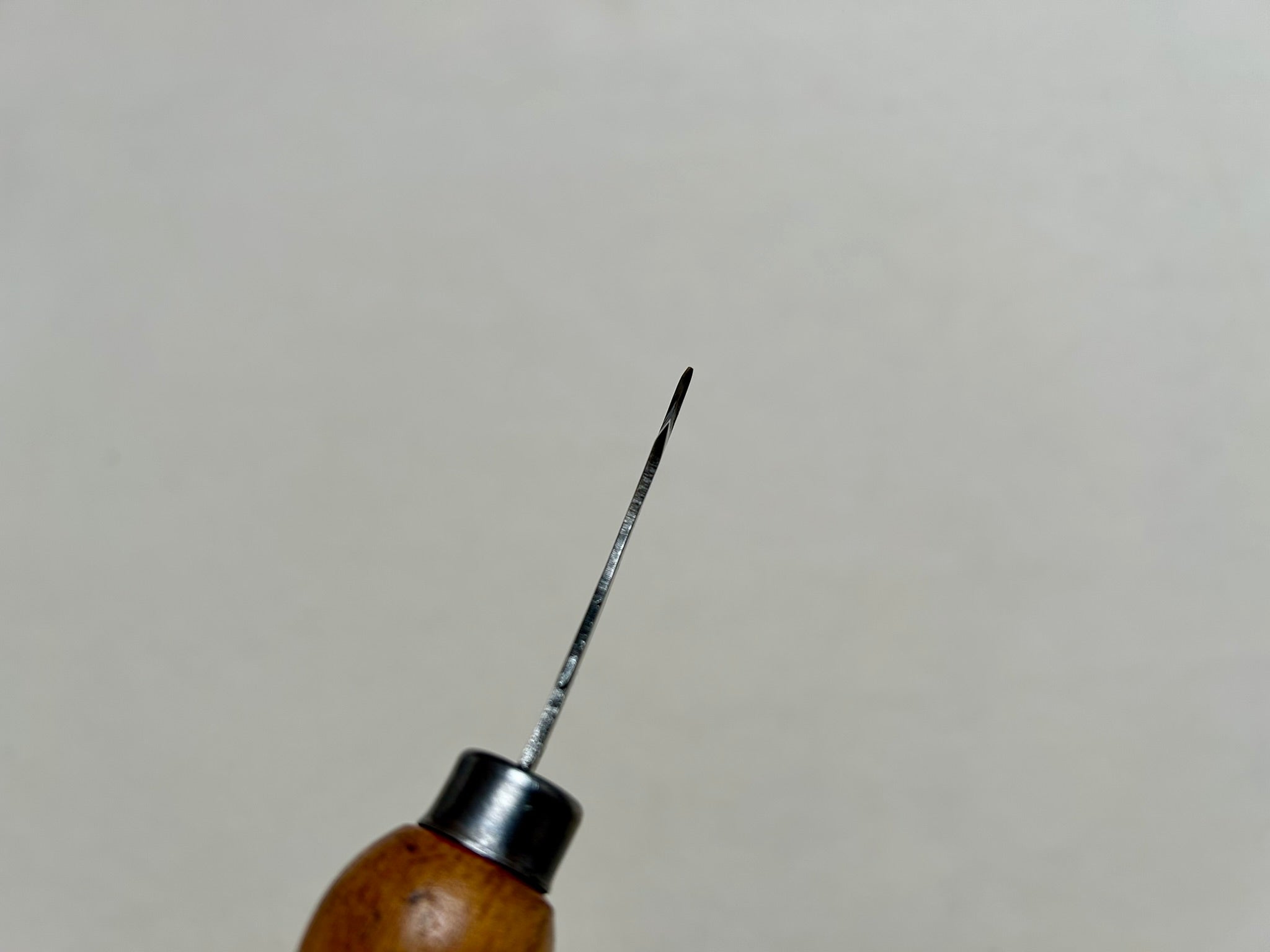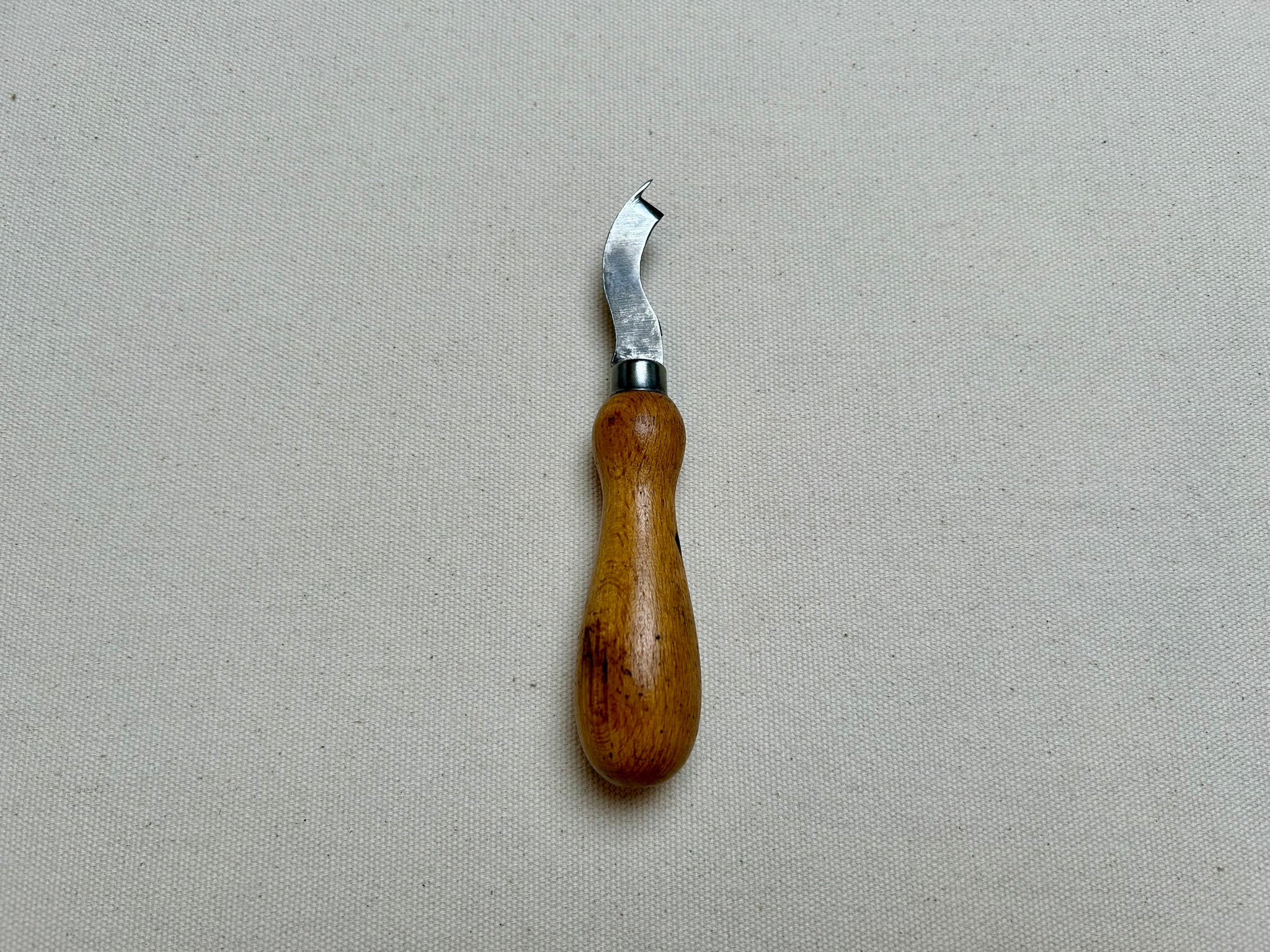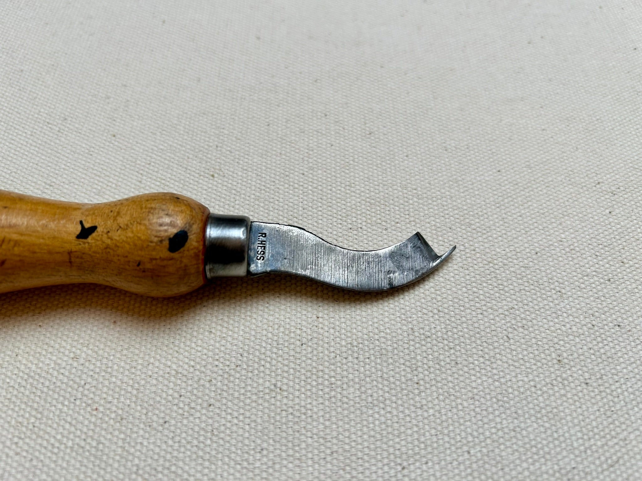 This is a welt knife by R.Hess with a blade, which was beveled from both sides. Now it can be used to trim the sole edge. Most likely the blade bevel was changed by a skilled shoemaker, to meet his needs.